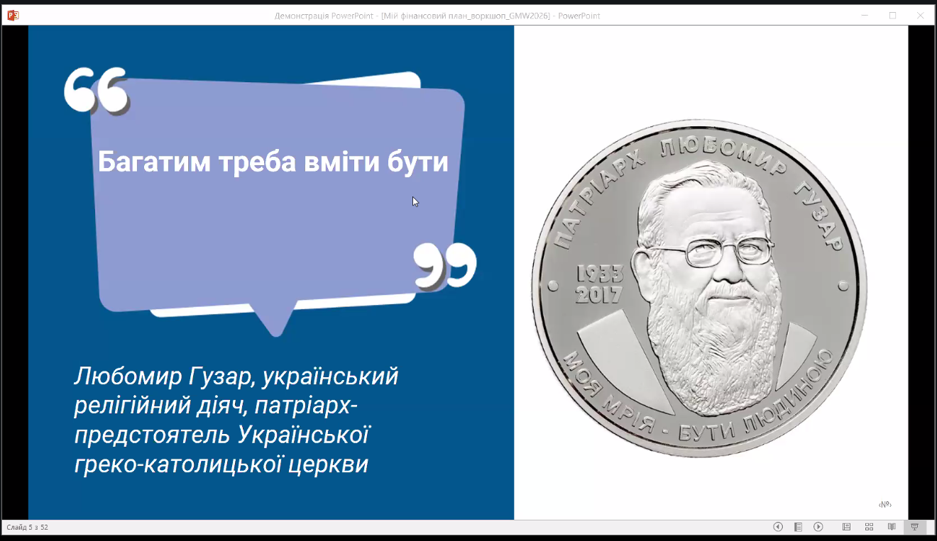 В умовах зростання ролі фінансової грамотності як ключової компетентності сучасної людини особливого значення набувають освітні ініціативи, спрямовані на формування навичок ефективного управління особистими фінансами. Саме такою подією став воркшоп «Мій фінансовий план», що відбувся 19 березня 2026 року. Він об’єднав учнів старшої школи, студентів, учителів, викладачів та всіх, хто прагне навчитися свідомо планувати власні фінанси та підвищувати рівень фінансової відповідальності.