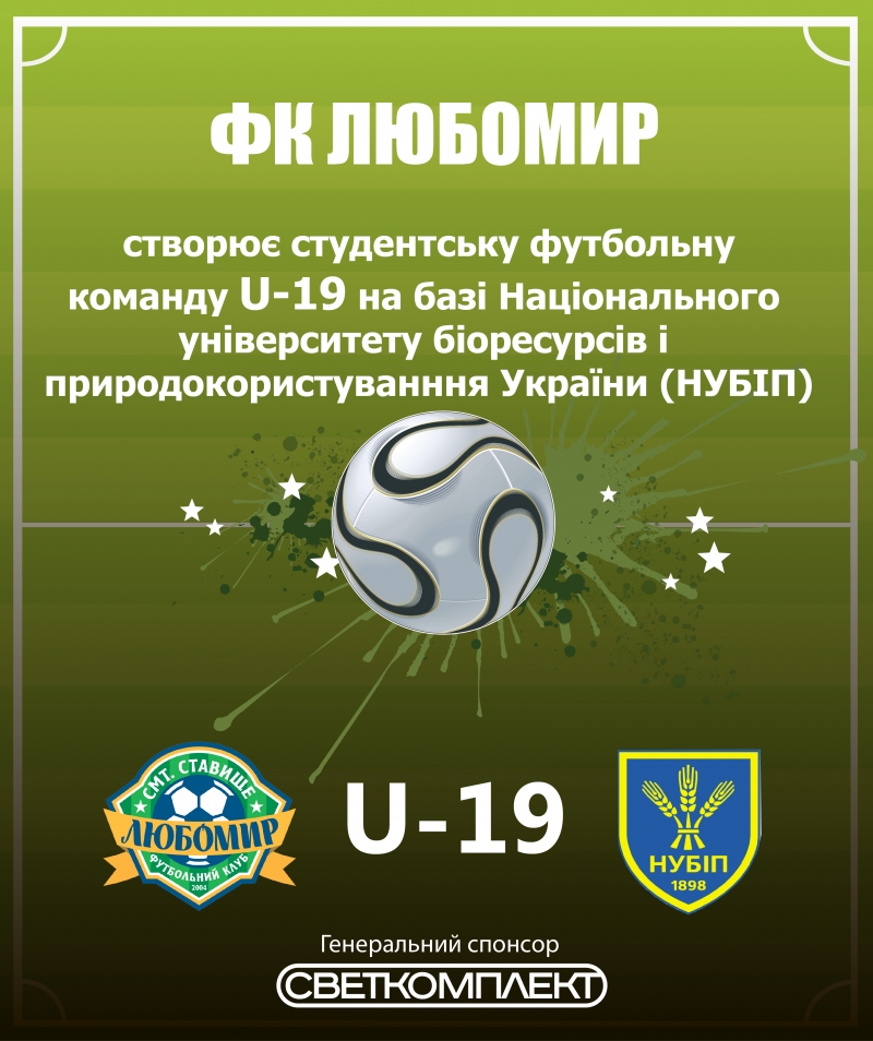 ФК «ЛЮБОМИР» (смт. Ставище) виступає ініціатором проекту щодо створення студентської футбольної команди U-19 на базі Національного університету біоресурсів і природокористування України (НУБіП України).