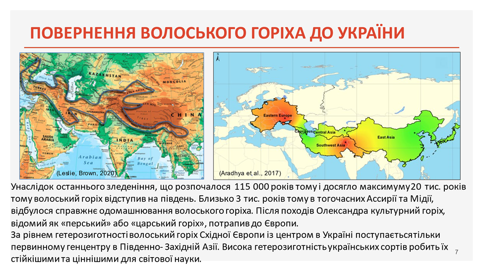 Професор також представив селекційні досягнення українських наукових установ, зокрема нові сорти волоського горіху, створені вітчизняними дослідниками, а також порівнявши їх із сортами іноземної селекції.