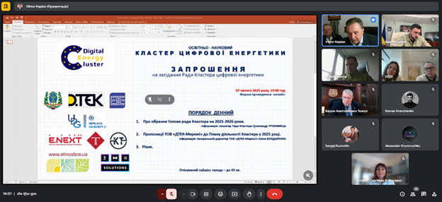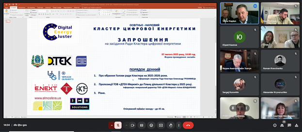 У відповідності до Угоди про заснування Рада освітньо-наукового Кластера цифрової енергетики щорічно проводить засідання для підбиття підсумків роботи та узгодження плану подальшої діяльності.