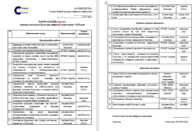 Загалом, сформований проєкт Плану діяльності Кластра цифрової енергетики у 2025 році взятий за основу з доопрацюванням у робочому порядку.