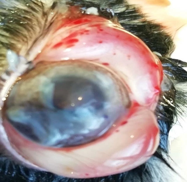 На 30 добу після трансплантації амніотичної оболонки кроля відзначали блідо-рожеву кон'юнктиву і відсутність виділень з кон'юнктивальної порожнини. У всіх експериментальних тварин амніотична оболонка відсутня, поверхня рогівки була епітелізована, флюоресцеїном не фарбувалася. У деяких випадках спостерігали формування неінтенсивного помутніння з явищами залишкової інфільтрації. Васкуляризація рогівки у всіх тварин була відсутня.