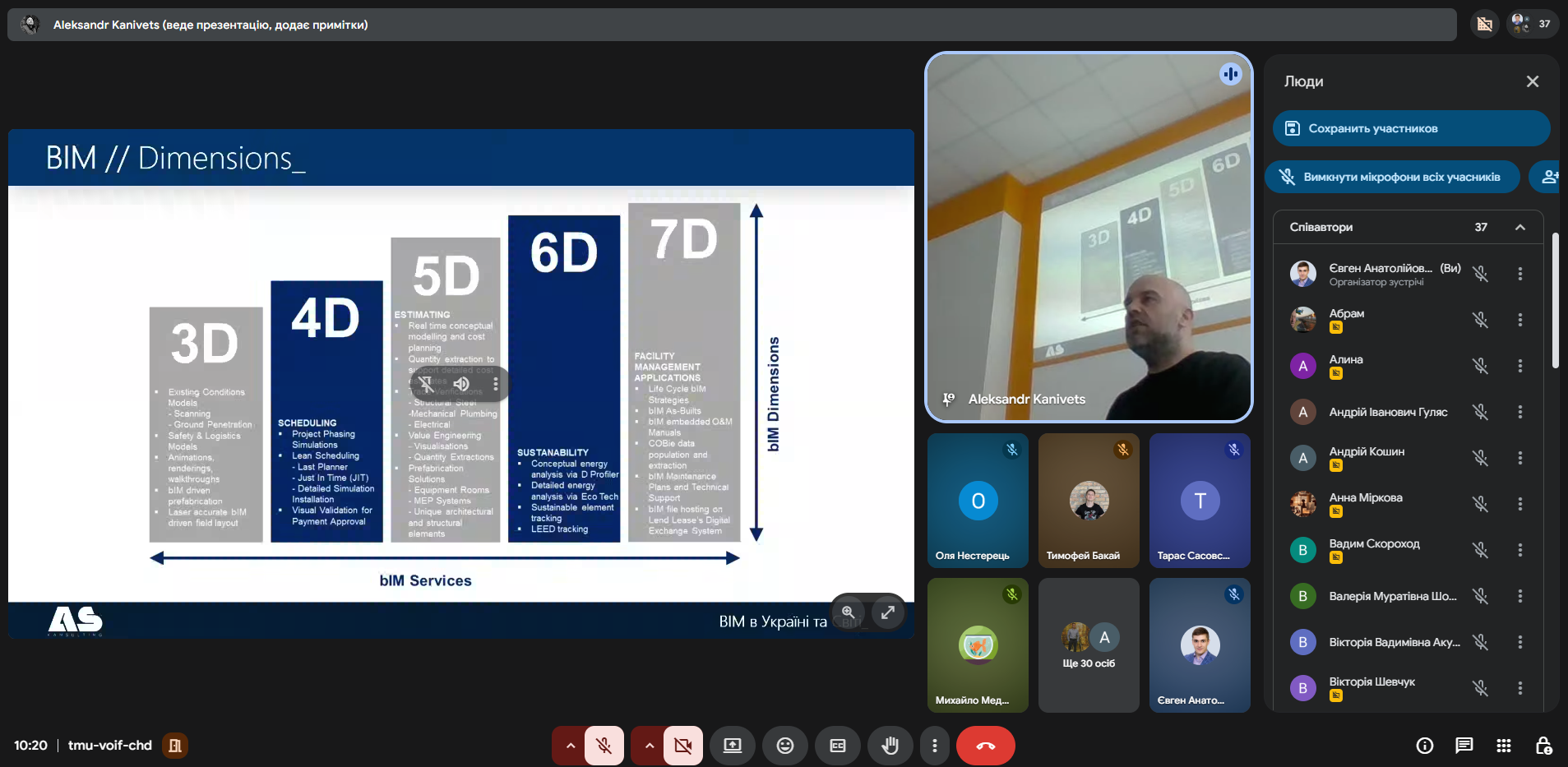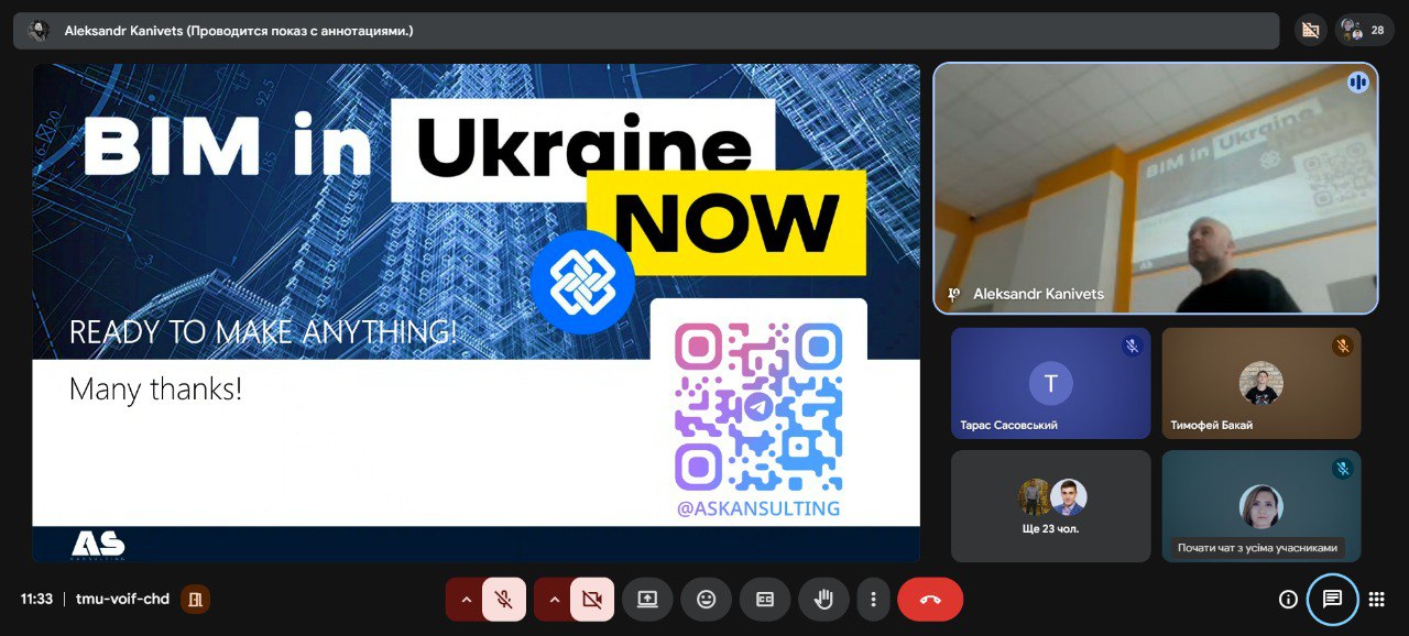 Кафедра будівництва висловлює щиру подяку спікеру — авторизованому інструктору Autodesk, засновнику компанії ASKansulting Олександру Канівцю — за змістовну, актуальну та практикоорієнтовану лекцію, відкритість до діалогу зі здобувачами освіти та вагомий внесок у популяризацію BIM-технологій в Україні.