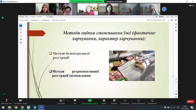Доцент кафедри технології м’ясних, рибних та морепродуктів Юлія Крижова доповнила онлайн зустріч лекцією про основи епідеміології харчування, як частину науки про харчування, роль чинників харчування в розвитку та профілактиці захворювань сучасної людини. Студенти отримали інформацію, що для оцінки характеру взаємозв’язку між харчуванням і результатом його дії потрібна достовірна і об’єктивна кількісна характеристика, яку можна отримати за допомогою спеціальних методів дослідження. До них відносяться: методи оцінки споживання їжі або фактичне харчування, і методи оцінки стану харчування або харчовий статус. На лекції була дана характеристика факторів харчування, які є одним з головних завдань епідеміології харчування.