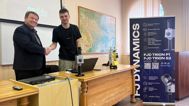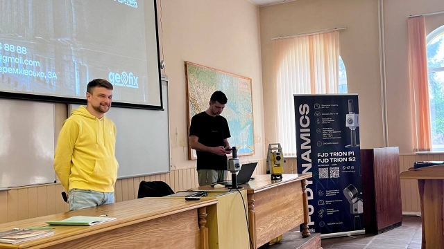 Сьогодні, 24 березня, на заняття з дисципліни "Геодезичні роботи при землеустрої" до студентів 3-го курсу та 2-го курсу скороченої форми навчання завітали Олексій Куценко, директор компанії «Геофікс», та Дмитро Матвійчук, керівник технічного відділу.