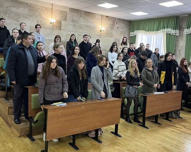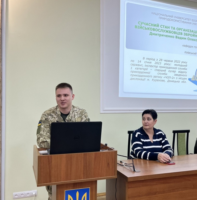 2 листопада 2023 р. у нашому університеті відбулась гостьова лекція від Начальника центру управління службою відділу прикордонної служби Ділове сержанта-інспектора прикордонної служби вищої категорії Дмитриченка Вадима Олександровича. В період з 28 червня 2022 року по 14 січня 2023 року – старший кухар відділу прикордонної служби зведеного прикордонного загону «Чоп-2» з місцем дислокації м. Курахове Донецької області. Тема: “Cучасний стан та організація харчування військовослужбовців Збройних сил України” Лекція розпочалась з гімну України та хвилини мовчання.