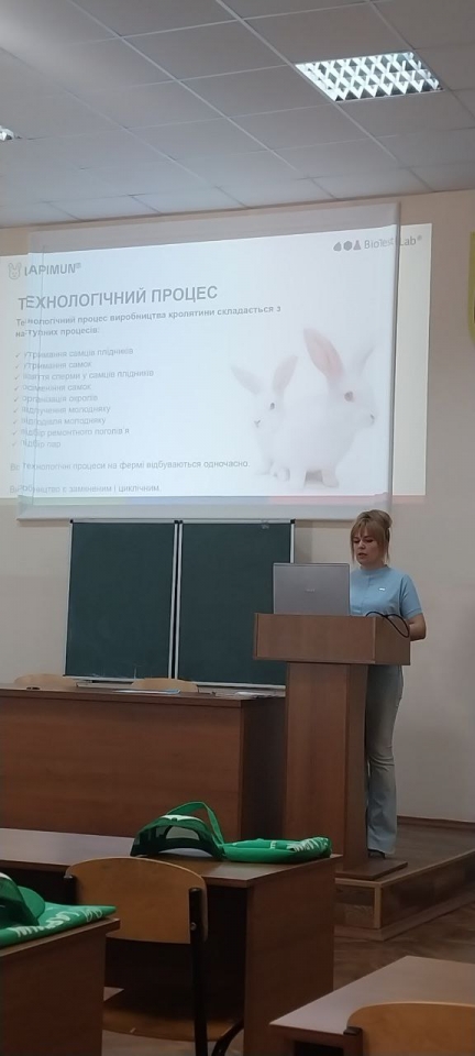 Висока конкуренція на ринку праці спонукає заклади вищої освіти до пошуку ефективних нових методів підготовки фахівців, які відповідатимуть вимогам роботодавців. Одним з активних методів навчання є гостьові лекції, які стали традиційними на факультеті тваринництва та водних біоресурсів, сприяючи налагодженню співробітництва між закладами, виробничниками та науковцями. Студентам 4 курсу та 3 курсу СТН в рамках дисципліни Технологія виробництва продукції кролівництва була запропонована гостьова лекція від представниці компанії ТОВ «ТД БіоТестЛаб» фахівця в галузі кролівництва Анни Александрової. Перед початком лекції доцент кафедри технологій у птахівництві, свинарстві та вівчарстві Руслана Уманець наголосила, що лекція спрямована на формування фахових компетентностей для майбутньої професійної діяльності.