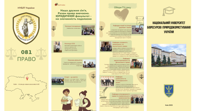 Після опанування теоретичного матеріалу, практичних кейсів із роботи КП «Київреклама» взялись до практичної реалізації набутих навичок. Так, дотримуючись загальних вимог до реклами, викладених у ст. 8 Закону України «Про рекламу» студенти мали розробити і презентувати рекламні матеріали (постери, брошури, презентації, відеоролики) з рекламою навчання на юридичному факультеті.