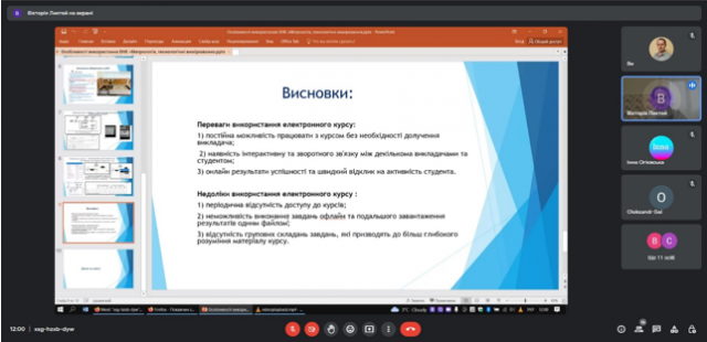 Основну увагу він звернув на наповнення курсів спеціальним навчальним контентом, використання не шаблонних підходів до викладання спеціальних дисциплін. Слухачам також було важливо нагадати процедуру атестації електронних навчальних курсів, яка діє в університеті.