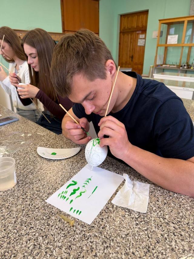Вони використовували традиційні орнаменти: витончені квіточки, гілочки, листочки. Кожна писанка вийшла унікальною, кожен додав щось своє – кольори, візерунки. Під час роботи студенти не лише навчилися техніки розпису, а й глибше пізнали українські традиції та культури. Дякуємо за незабутню зустріч Людмилі ТІМАКОВІЙ та Оксані КОСЕНКО.