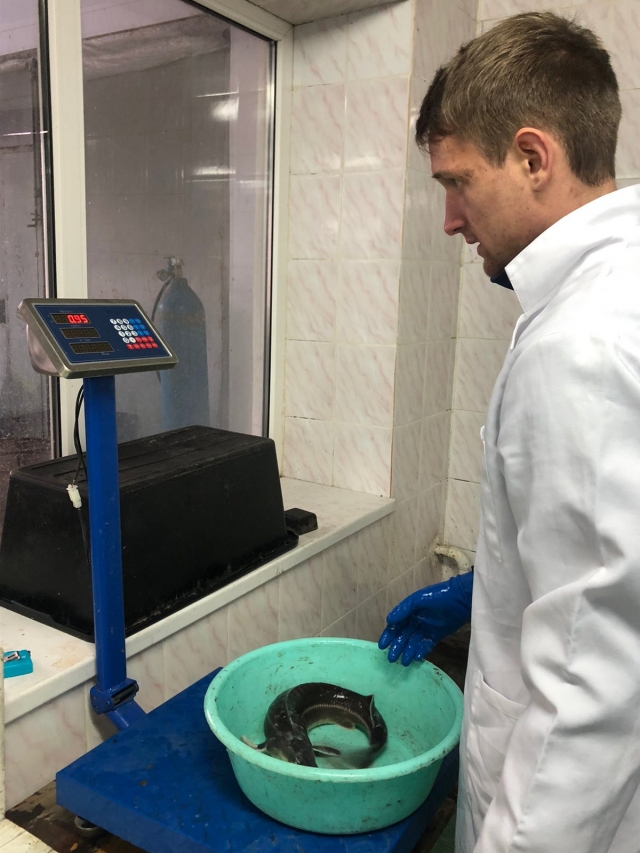 На початку березня студенти 3 курсу факультету тваринництва та водних біоресурсів (спеціальність 207 «Водні біоресурси та аквакультура») Кайстро Сергій, Крайніков Станіслав і Гаврилюк Мар’яна під керівництвом доцента кафедри аквакультури Коваленка Василя Олександровича провели перевірку готовності самиць стерляді, які утримуються в басейнах ННВЛ рибництва, до інкубаційної кампанії 2020 року.