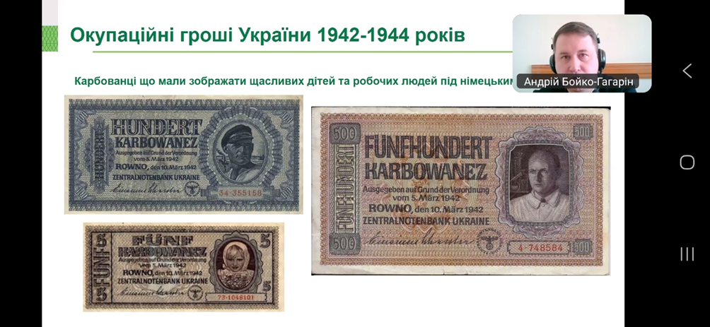 Андрій БОЙКО-ГАГАРІН у доступній формі ознайомив слухачів із історією грошей, їх еволюцією та їх роллю у людській цивілізацій. Спікер також зупинився на нумізматиці – історії формування грошової одиниці.