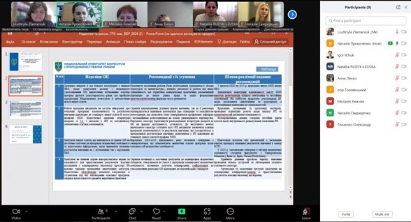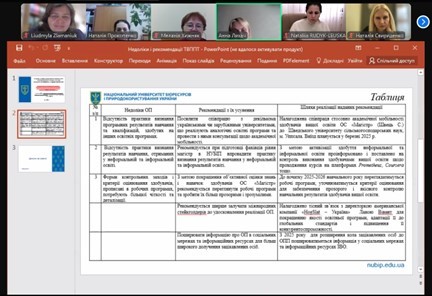 На розгляд членів навчально-методичної ради представлені рекомендації щодо усунення виявлених недоліків та шляхи реалізації наданих рекомендацій, які й були обговорені. Зазначимо, що ще до фінального рішення Національного агентства із забезпечення якості вищої освіти щодо акредитації частина рекомендацій вже впроваджена.