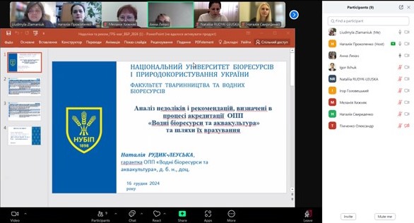 На засіданні були обговорені питання акредитаційної експертизи освітньо-професійної програми ОПП «Водні біоресурси та аквакультура» ОС «Бакалавр», яка буде проведена в наступному навчальному семестрі.