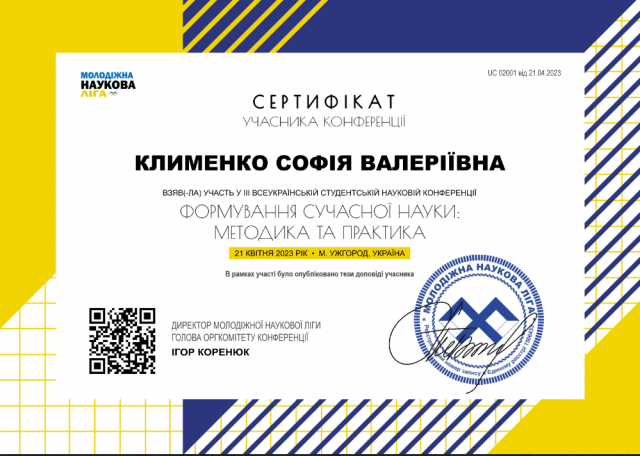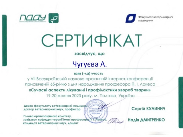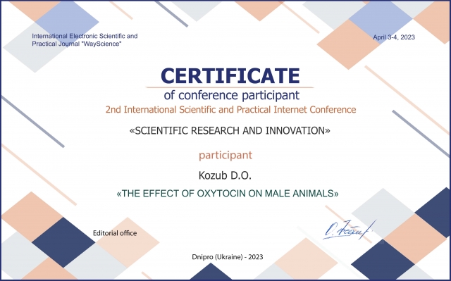 Слід відмітити, що кожен член гуртка "Ветеринарна фармакологія і фармація" має чітко окреслені завдання і працює над їх виконанням. Так, у 2023 році було підготовлено дві статті у фахових журналах України, низку тез та взято участь у Міжнародних та Всеукраїнських науково-практичних конференціях. Необхідно відзначити наукові успіхи гуртківців Клименко Софії, Панасюк Соломії, Чугуєвої Аліни, Козуб Дар’ї, Когутича Максима, Чепурного Дмитра, Босої Євгенії, Шелестак Діани – ви молодці!