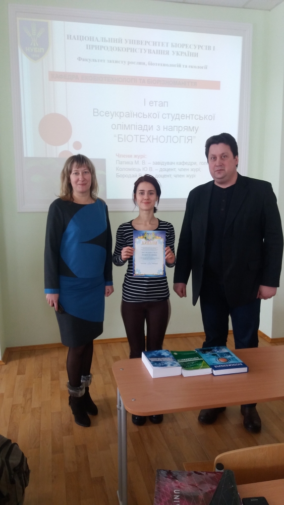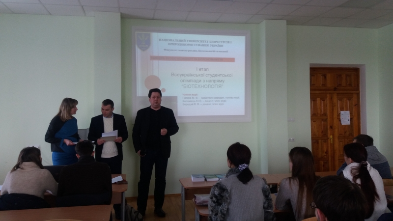 Напередодні початку весни, 27 та 28 лютого, серед студентів факультету захисту рослин, біотехнологій і екології було проведено I етап Всеукраїнської олімпіади з біотехнології. Майбутня еліта України, а саме студенти спеціальності "Біотехнологія" зібралися у 4-у корпусі, щоб спробувати свої сили. Відкриття олімпіади почалося з вітального слова завідувача кафедри екобіотехнології та біорізноманіття, д.с.-г.н., професора, членкора НААН Патики Миколи Володимировича. Провідні фахівці факультету – члени журі к.б.н., доцент Коломієць Ю.В. і к.б.н., доцент Бородай В.В., заступник декана із спеціальності «Біотехнологія» к.і.н. Дрозд П.Ю. – ознайомили всіх учасників із регламентом цього хвилюючого дійства, побажали всім удачі.