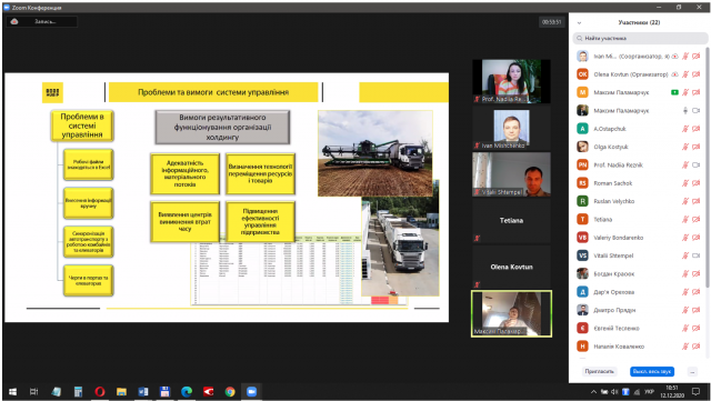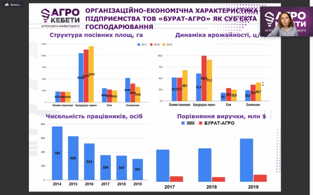 Першою доповіддю була презентація Ярослава Гримовича, який завдяки участі у проєкті "Агрокебети" вже півроку є співробітником даної компанії, що дозволило йому брати безпосередню участь в опраційній діяльності підприємства.