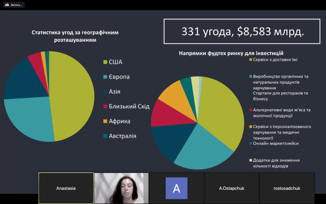 Наступною до доповіді була запрошена Анастасія Кирильчук, ментором якої був Артем Бєлєнков, який є запрошеним гостьовим лектором курсу "Смарт-технології в агро".