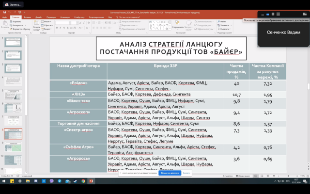 Цікавим дослідженням виявилась робота Миколи Осипчука, яку він підготував під безпосереднім керівництвом Юрія Шлончака, ментора від компанії МХП та при координації доцента Олександра Файчука. Юрій Шлончак долучився до обговорення результатів проведеного дослідження.
