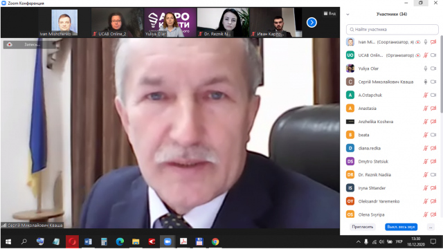 До пристуніх з вітальним словом звернувся професор Сергій Кваша, проректор з навчальної та виховної роботи. Він закликав студентів-магістрів представити результати виконаних проектів, показати їх суть та користь, а також продемонструвати весь комплекс знань, що студенти отримали, навчаючись в проекті "Агрокебети".
