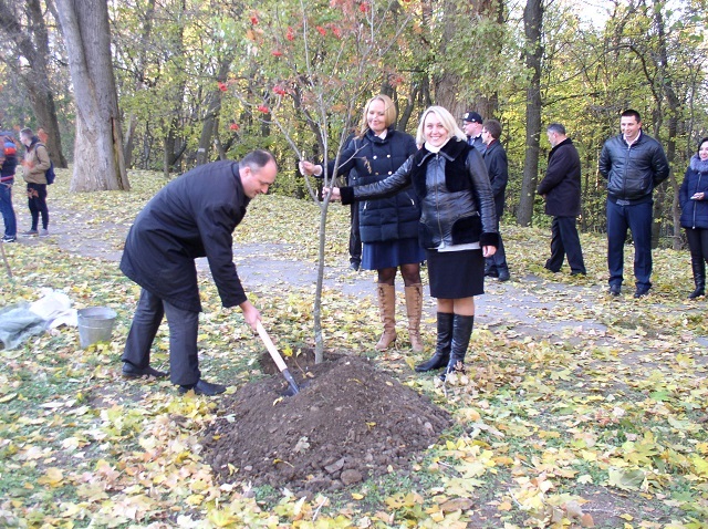 Після урочистого засідання учасники конференції продовжили традицію попередників і долучилися до посадкових робіт із формування «Алеї молодих вчених» у сквері «Ювілейний» новими екземплярами горобини звичайної (фото 1, 2).