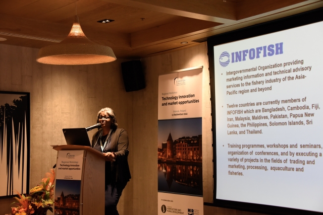 Фото 8. Виступ на семінарі Ширлін Марії Антонісамі, директора INFOFISH (Малайзія)
