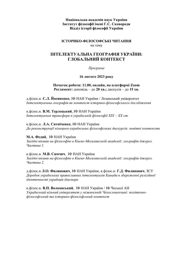 Інститут філософії імені Г.С.Сковороди НАН України запрошує до участі у роботі конференції "Інтелектуальна географія України: глобальний контекст" сб, 4 лют 2023 - 02:00