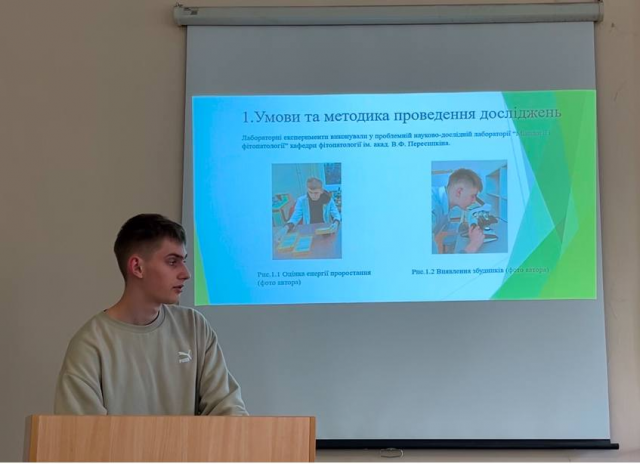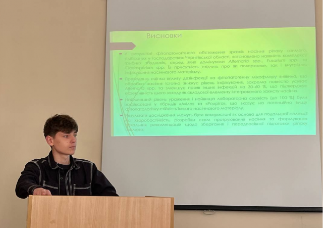 На конференції були представлені доповіді учасників гуртка “Фітопатологія”, серед яких презентували змістовні та цікаві роботи студенти: Гольцбергер Йосип – «Хвороби насіння ріпаку озимого», Пастух Тарас – «Мікофлора насіння сої» та Чепчак Михайло – «Динаміка розвитку білої гнилі соняшнику».