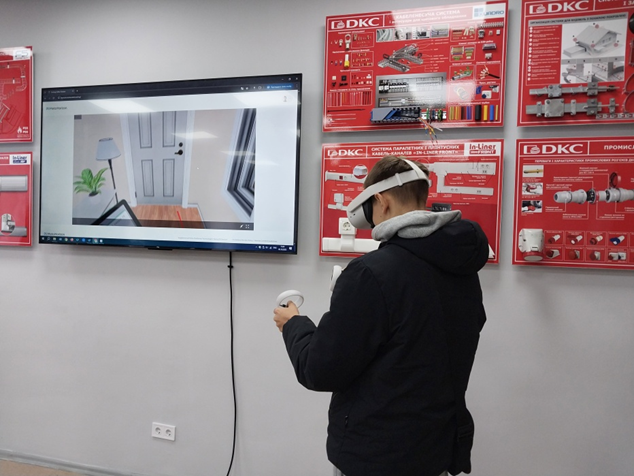 Однією з «екшн-зон», де з неабияким зацікавленням ліцеїсти попрактикувалися на VR-тренажерах у віртуальному просторі, виконуючи лабораторні роботи із монтажу сонячної електростанції та підключення бензинової електростанції, які для гостей провели викладачі кафедри інженерії енергосистем Андрій Петренко і Вікторія Ликтей, стала навчальна лабораторія «Монтажу електрообладнання та засобів автоматизації», яка була нещодавно відкрита за підтримки учасників Кластеру цифрової енергетики.
