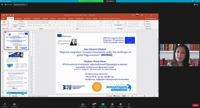 Серед великої кількості цікавих й актуальних доповідей можна виокремити виступ д.е.н., проф., завідувачки кафедри світової економіки Державного торговельно-економічного університету, координаторки проєкту «Модуль Жана Монне «Адвокатування європейських правил конкуренції» Ганни Дугінець, яка наголосила на потребі залучення до роботи Європейських студій не лише студентів вузів, але й учнів середніх шкіл. На її думку, в умовах воєнного стану це могло би суттєво збільшити соціальний ефект від імплементації майбутніх проєктів. У свою чергу, про нові можливості дослідження досвіду ЄС проінформував к.соц.н, директор Транскарпатського центру Жана Монне з досліджень європейських стратегій розвитку, науковий співробітник НН Інституту євроінтеграційних досліджень Ужгородського національного університету Петро Токар. Не менш цікавою виявилась доповідь д.е.н., професорки кафедри міжнародної економіки Західноукраїнського національного університету, координаторки проєкту «Модуль Жана Монне «Регіональна інтеграція: європейський бенчмарк в умовах викликів глобальної фрагментації» Марії Лизун. Вона зазначила , що в теперішній час ЄС переживає складні часи своїх трансформацій, однією із причин якої є складна ситуація в Україні, яка «розташована на розломі цивілізацій».