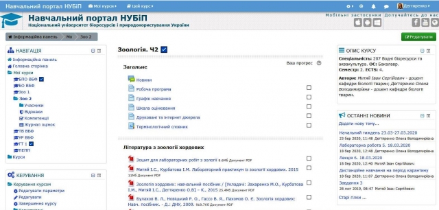 Перехід на дистанційну форму навчання студенти і викладачі кафедри біології тварин сприйняли з розумінням, адже всі дисципліни кафедри мають електронні навчальні курси на порталі НУБіП України, 90% з яких атестовані.