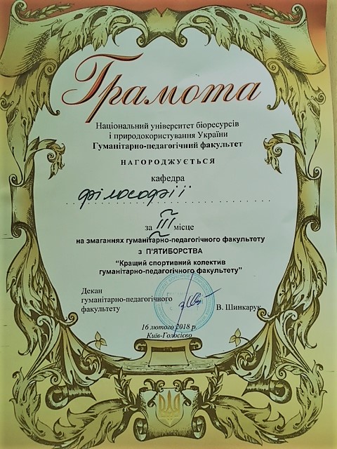 Кафедра філософії здобула третє місце на загальнофакультетській спартакіаді