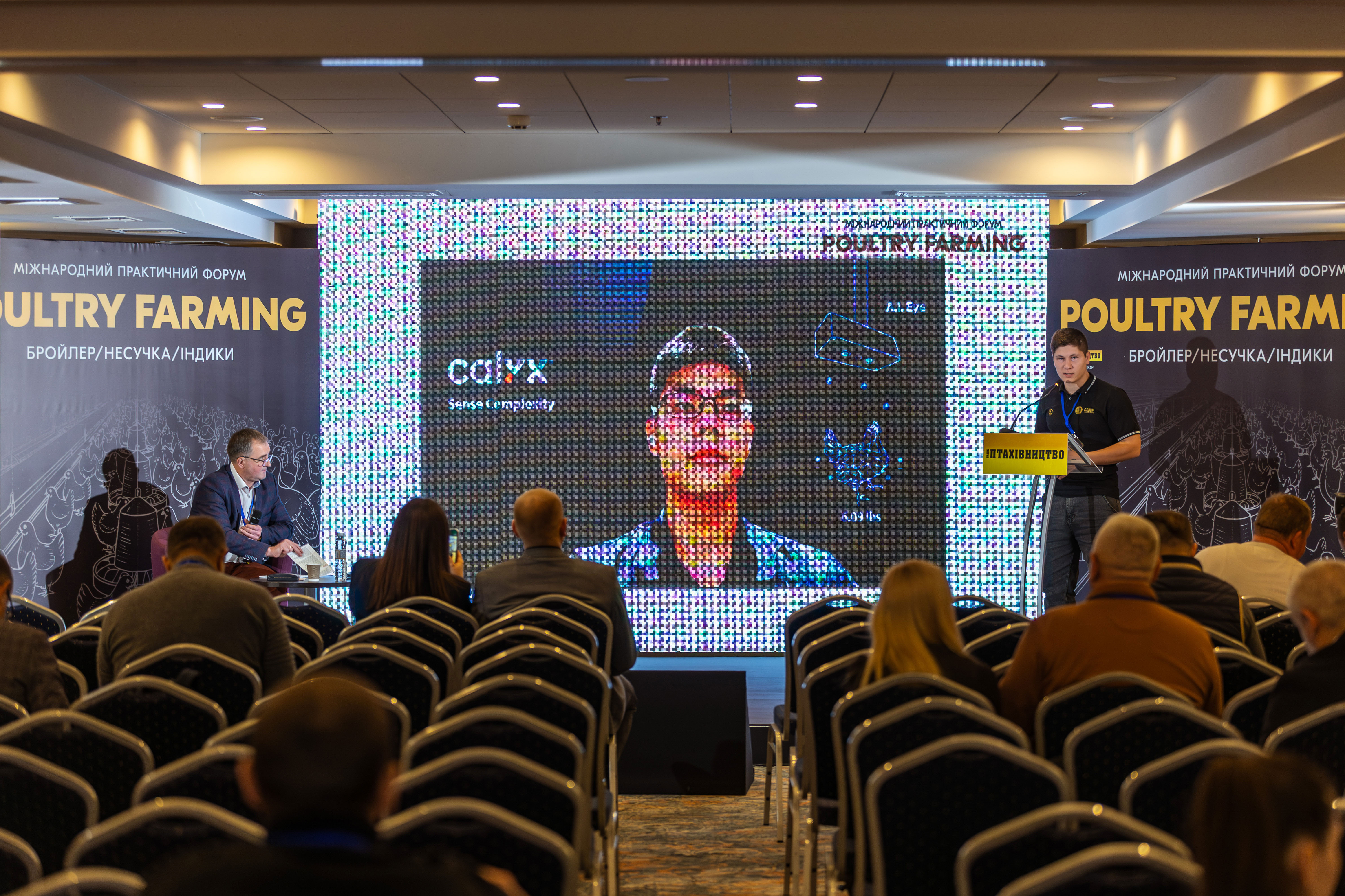Не менш цікавим був виступ аспіранта Іллі ЗБОВБЕЛЯ, який ознайомив учасників із інноваційним проєктом «Визначення ваги бройлерів за допомогою ШІ». У межах презентації було продемонстровано можливості унікальної AI-камери Calyx (Тайвань), розробленої спеціально для птахофабрик.
