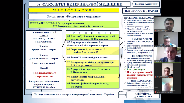 В розрізі профорієнтаційних заходів факультету 31 березня викладачі кафедри кафедри хірургії і патофізіології ім. акад. І.О. Поваженка провели навчальний онлайн-семінар зі студентами природничого відділення Вишнянського коледжу Львівського національного аграрного університету. Природниче відділення коледжу здійснює підготовку молодших спеціалістів зі спеціальності "Ветеринарна медицина". Зустріч із вихованцями допомогла організувати Храбко Марія Іванівна - заступник директора коледжу з навчальної роботи.