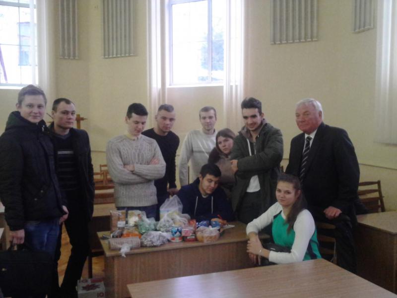 За тиждень до дня Святого Миколая студенти другої та третьої груп ІІІ курсу агробіологічного факультету разом з кураторами Скриник О.А., Ярош А.В. та завідувачем кафедри кормовиробництва, меліорації і метеорології Демидасем Г.І. зібрались задля того, щоб передати часточку своїх святкових почуттів, щирих емоцій та різноманітних смаколиків бійцям, які не матимуть можливості на свята побути в родинному колі. Ініціаторам чудодійства було важливо, що наш «миколайчик» призначений саме для побратимів студента заочного відділення нашого університету агробіологічного факультету Гордича Олега. Хлопці в даний момент знаходяться на передовій та захищають наш мир і спокій.