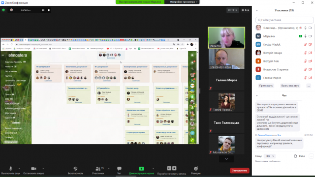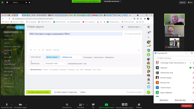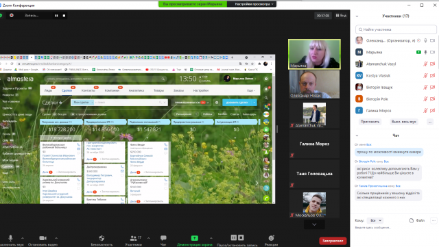 Пані Мар’яна увімкнула режим трансляції екрана монітора і показала учасникам зустрічі, як використовується сучасна CRM-система в її підприємстві. Тут студенти побачили, як в режимі реального часу здійснюється постановка завдань, розподіл обов’язків, фіксуються відмітки про виконання певних етапів роботи. В цілісній системі узгоджені і ділова комунікація через систему документообігу, і чати, де обговорюються окремі робочі питання в неформальній обстановці. Завдяки такій програмі управлінські рішення приймаються швидко, виконання фіксується оперативно і чітко, що дає можливість дотримуватись строків і оцінювати результативність кожного виконавця.