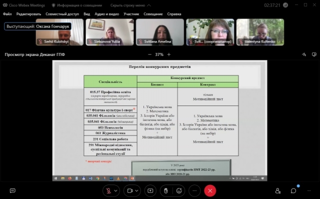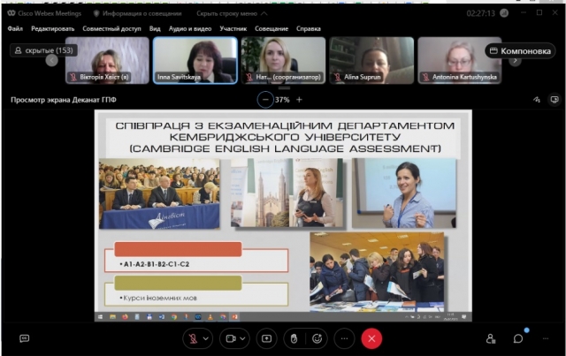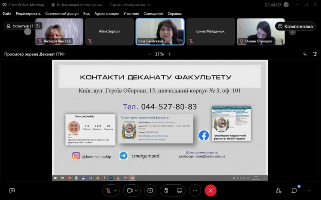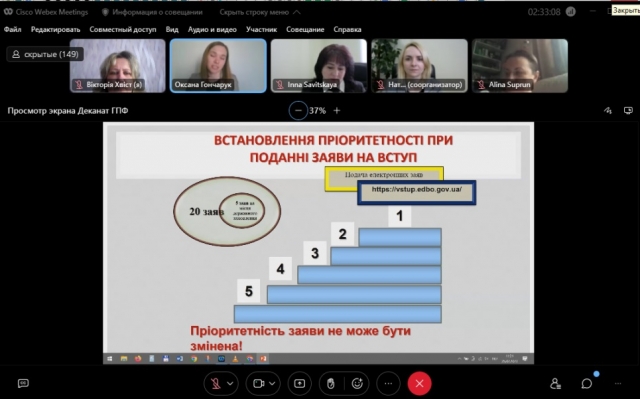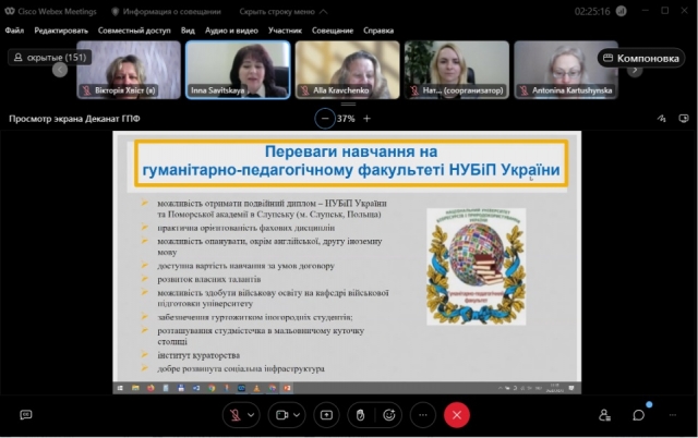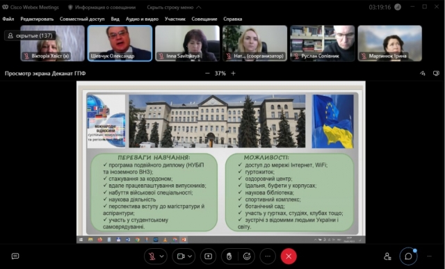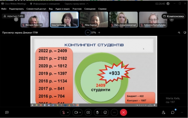 З вітальним словом до присутніх звернулася декан гуманітарно-педагогічного факультету Інна Савицька, яка подякувала присутнім за увагу до університетського заходу у таких надскладних сьогодні умовах нашого буття. Декан розповіла про перспективи та переваги навчання на факультеті, можливості, що відкриваються перед його випускниками. Присутні також змогли здійснити віртуальну екскурсію по факультету завдяки інформаційному відеоролику, творчо відзнятому нашими талановитими студентами.