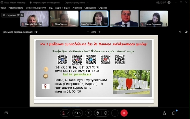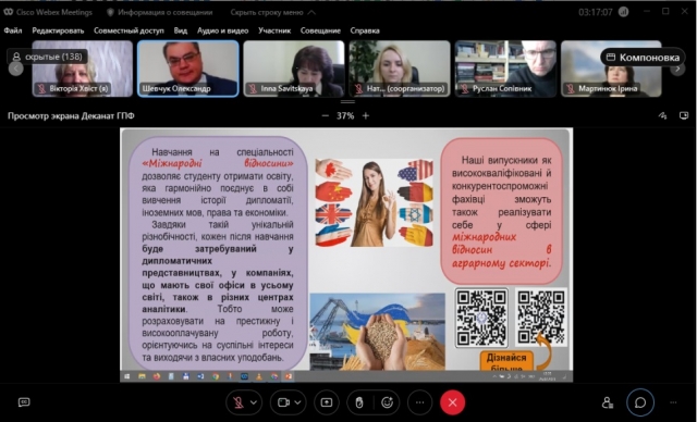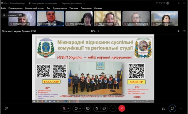 Кожен із завідувачів кафедри представив свою спеціальність, серед них і спеціальність 291 «Міжнародні відносини, суспільні комунікації та регіональні студії». Завідувач кафедри доктор історичних наук, професор Олександр Шевчук окреслив переваги здобуття спеціальності міжнародника в університеті, відмітивши, що сьогодення показує затребуваність у фахівцях дипломатичного фронту. Відзначив якість теоретичної та практичної підготовки студентства, і не лише в навчальній, але й науковій та дослідницькій сферах. Гарні можливості зреалізувати свій творчий потенціал та спортивні захоплення. Очікувано, що спеціальність викликала зацікавленість, підтвердженням чого стали запитання у чаті онлайн-зустрічі.