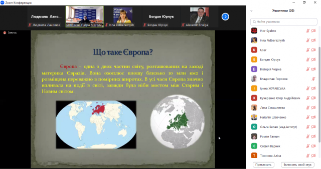 Темою першої лекції історика стала «Історія Європи і України. Періодизація і схеми-концепції». Учасники зустрічі долучилися за допомогою онлайнової платформи Zoom. Серед основник обговорюваних питань: що собою являє Європа, актуальність дискурсивних понять «Русь» і «Україна» та підходи до періодизації історії, зокрема української, різні ідеї, а також схеми-концепції історичності держави Україна.