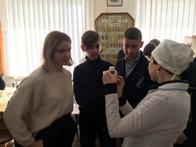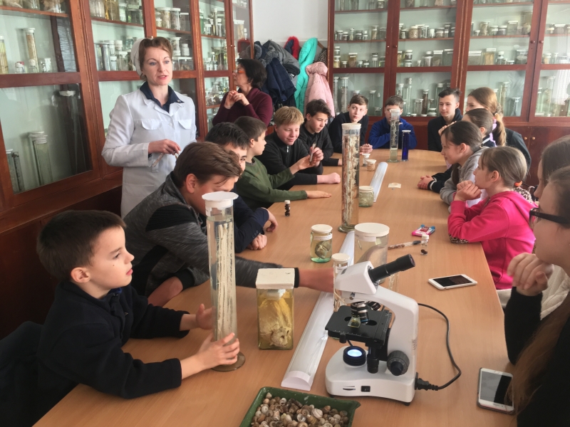 Тут їх радо зустрічають професори Наталія Сорока, Михайло Прус чи доценти Олена Семенко, Марина Галат, Раїса Слободян, Ірина Пашкевич і починається урок, який поєднує і знання із зоології, і з екології, і з епідеміології. З яким захопленням діти розглядають мікроскопічних паразитів під мікроскопом! Викладачі показують макропрепарати паразитів і розповідають про особливості їх циклів розвитку, про небезпеку для здоров’я людини, що необхідно робити щоб вберегтися від зараження.