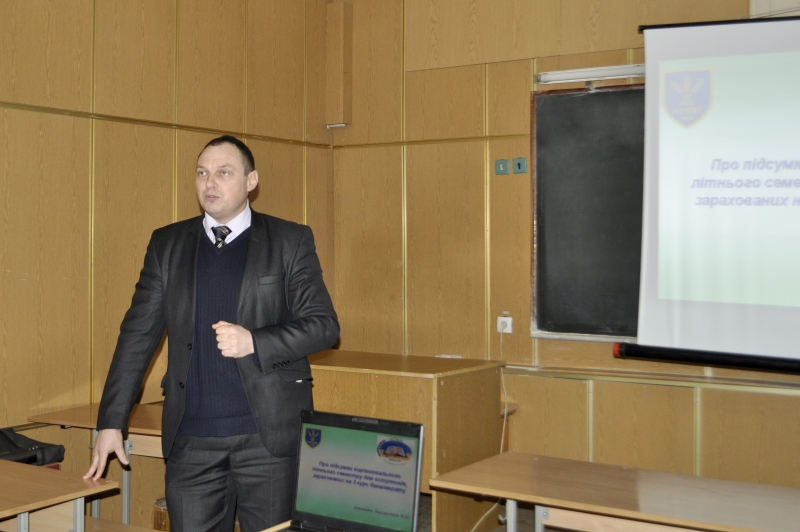 У зустрічі з майбутніми абітурієнтами взяв участь заступник декана агробіологічного факультету В. М. Завгородній. Він розповів про умови вступу в університет для абітурієнтів з дипломом молодшого спеціаліста на програму скороченого терміну навчання та на 3 курс. Крім того він відповів на всі питання студентів, що стосувалися ліквідації академічної різниці, умов навчання та проживання у гуртожитку.