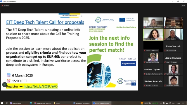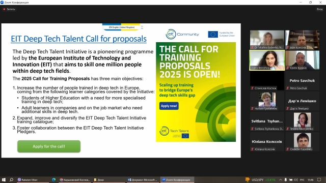 Протягом обговорення виникло багато запитань, що свідчить про великий інтерес викладачів до можливостей, які надають грантові програми EIT. Учасники активно обговорювали нюанси подачі заявок, можливості для розвитку інновацій та їх впровадження в освітній процес.