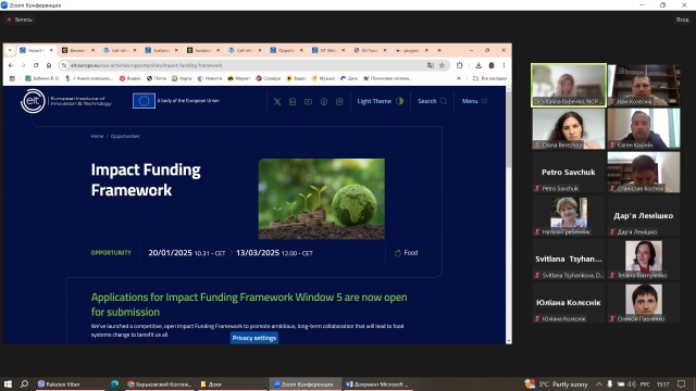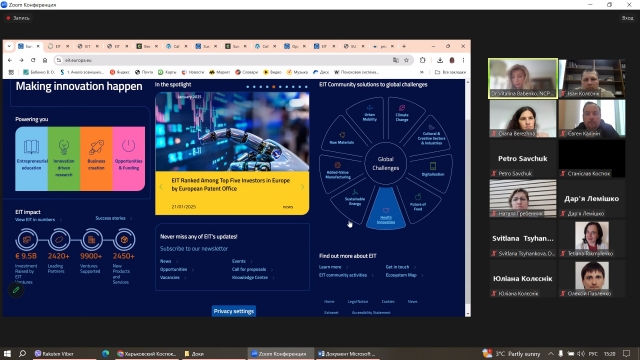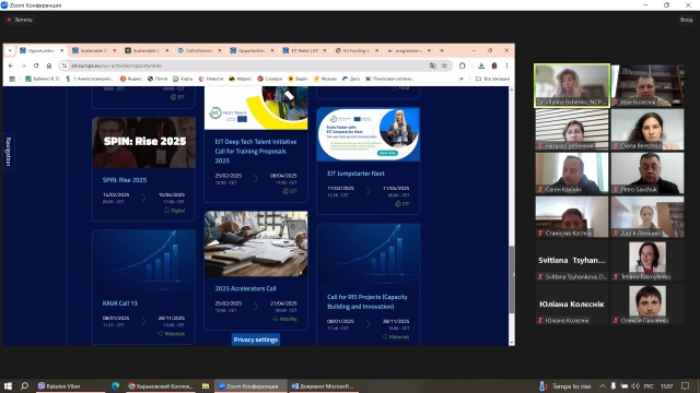 Під час заходу були розглянуті актуальні пропозиції від Європейського інституту інновацій і технологій (EIT) та детально обговорена процедура подачі грантових заявок. Викладачі мали можливість ознайомитися з різними грантовими програмами, дізнатися про критерії відбору та отримати корисні поради щодо підготовки та подачі заявок на участь у грантових ініціативах, спрямованих на розвиток інновацій та технологій.