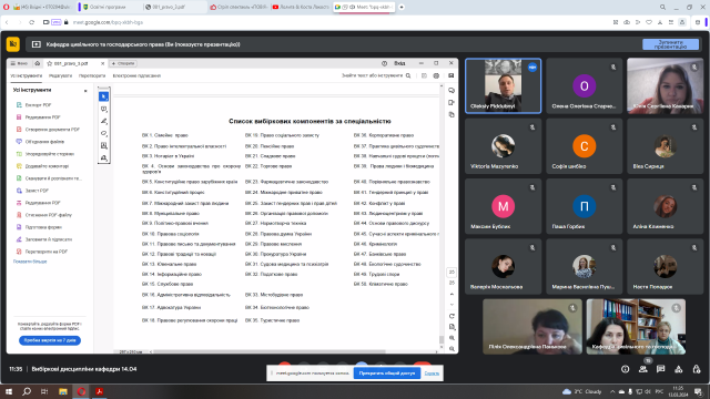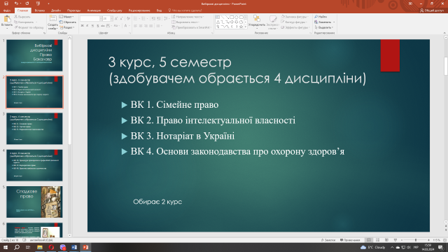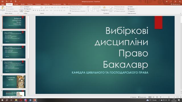 Кафедра цивільного та господарського права додатково провела зустрічі зі студентами 2 та 3 курсів та презентувала наочно дисципліни вільного вибору за спеціальністю від своєї кафедри.