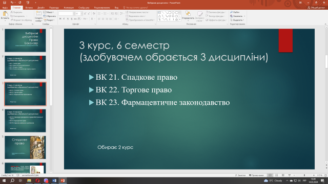 У 6 семестрі здобувачем обрається 3 дисципліни з 17!