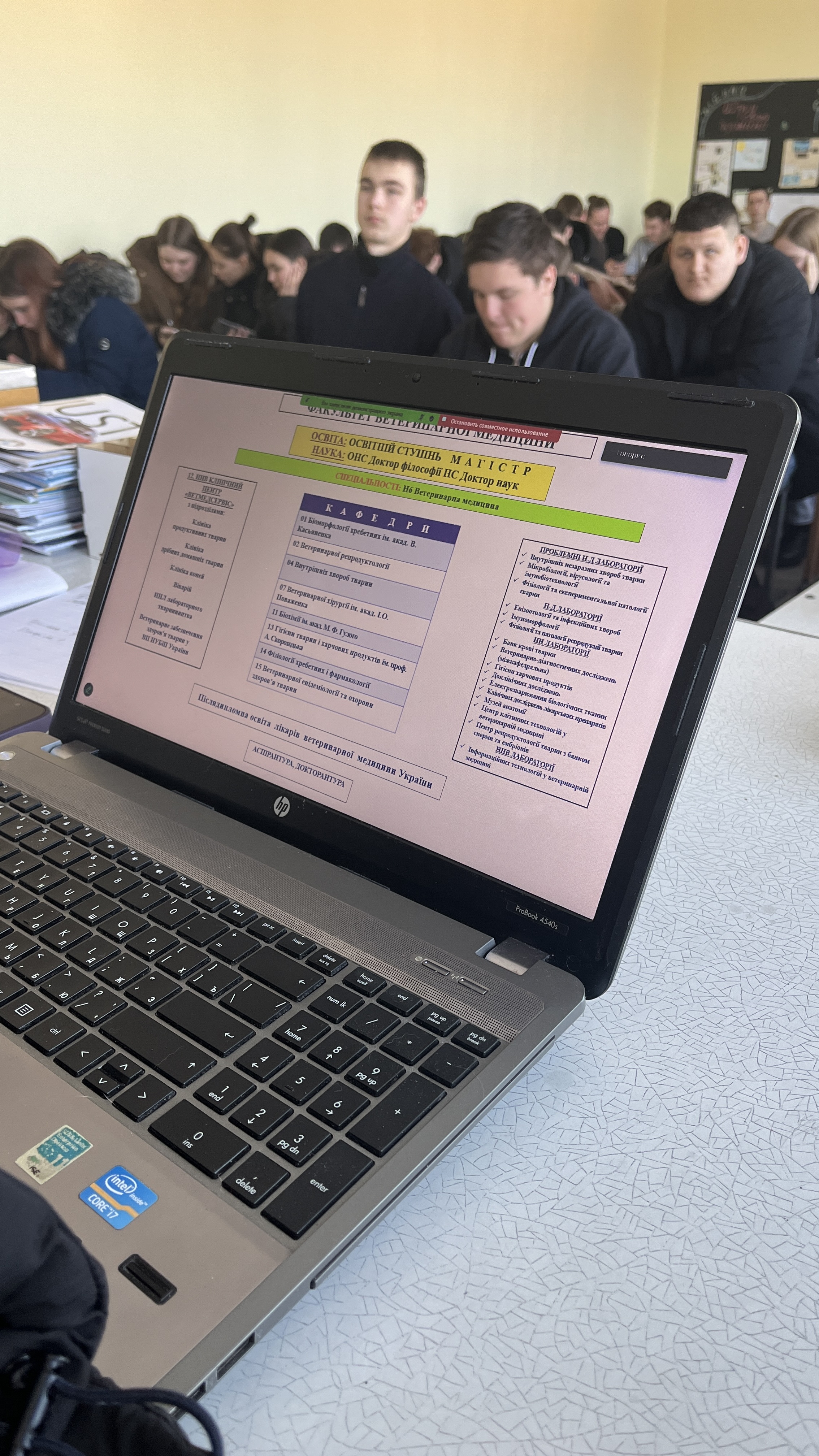 З метою залучення нових абітурієнтів до вступу в Національний університет біоресурсів і природокористування України асистентом кафедри ветеринарної хірургії імені академіка І.О. Поваженка Грищуком Ігорем була проведена профорієнтаційна робота серед учнів випускного класу Засульського ліцею Лубенської міської ради Лубенського району Полтавської області.