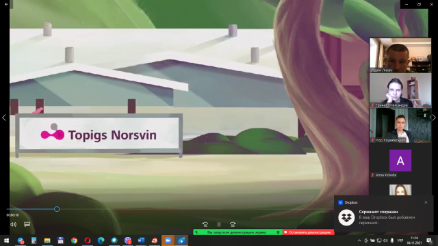 Так сьогодні на запрошення ведучого викладача доц. Лихача Вадима відгукнувся і приєднався в якості лектора керівник проєкту «Топігс Норсвін» в Україні – Кочмар Владислав Анатолійович. Пан Владислав ознайомив студентів 4 курсу ОС «Бакалавр» з інноваційною компанією «Топігс Норсвін» (Нідерланди, Норвегія, Австрія), генетичними продуктами лідера світового свинарства. Цікавим та змістовним був виступ лектора, продемонстровані відеоматеріали з реальних підприємств з виробництва свинини за використання тварин компанії «Топігс Норсвин» яскраво підтвердили високі продуктивні якості свиней цієї компанії.