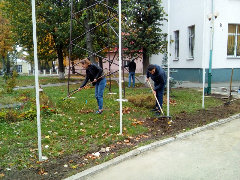Викладачі разом зі студентами навели лад з опалим листям та розчистили клумби від сухих рослин, провели перевірку системи водозливу та цілісність теплоізоляції навчального корпусу №8.