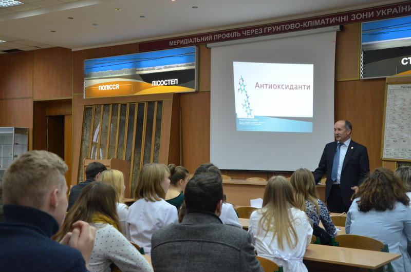 До свята завітав проректор з навчальної та виховної роботи С.М.Кваша. На початку з вступним словом до студентів звернулась в.о.завідувача кафедри Нестерова Л.О. Було відмічено, наскільки важливими є знання з хімії для майбутніх агрономів, харчовиків, ветеринарів, екологів, біотехнологів та інших спеціалістів агропромислового комплексу. Хімія може бути не тільки пізнавальною, а і яскравою, цікавою. Сергій Миколайович привітав студентів зі святом, підкреслив що такі заходи розкривають студентам світ знань з яскравої сторони і мотивують їх до навчання за обраною спеціальністю.