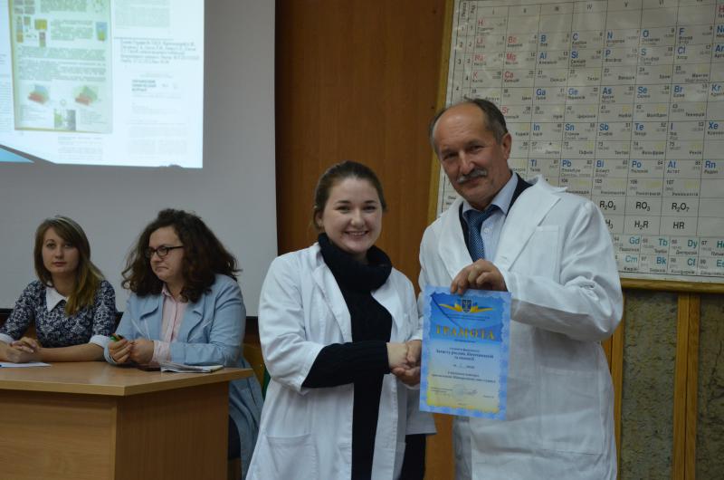 Доцент кафедри Хижан О.І. представила наукову доповідь на тему «Антиоксиданти», в якій було показано речовини, що використовують в харчовій промисловості в якості антиокислювальних харчових добавок. Також у доповіді представлено результати дослідження антиоксидантної активності фенолів різної будови при окисненні біодизельного пального.